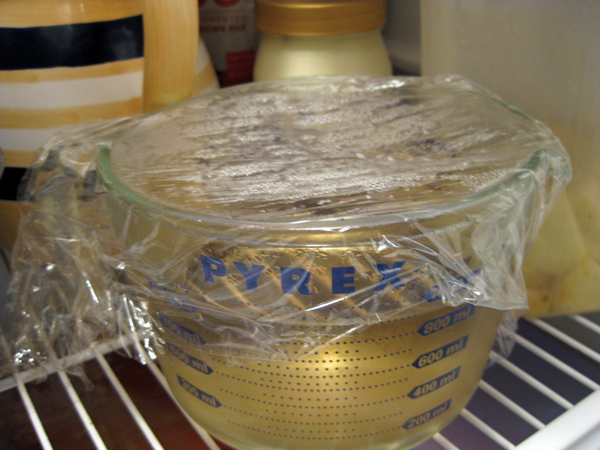 The next part of this post is going to be a little critical of Steve–sorry Sweetie. On Sunday, Steve made the delicious frittata with stinging nettle. (If you didn’t read the post let’s just say we were popular with the BDSM Googlers for a minute.) There was enough left over for Steve to take for lunch today and for my lunch as well. To my surprise, I opened the fridge and pulled it out it for lunch and I discovered that it was wrapped in parchment … AND plastic. Was the plastic wrap really necessary? Couldn’t it have been stored in a Tupperware container instead? I also noticed that the blanching broth from the stinging nettle was also covered in plastic. We do have mason jars with lids that Steve could have used instead, eliminating the need for the plastic wrap cover. So, unfortunately, on the first day of our plastic-free life, Steve used plastic wrap twice when it wasn’t necessary at all.