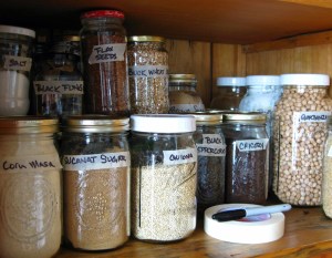 Purchasing bulk items is great, but without proper labeling you can get lost, your kitchen becomes cluttered, and you end up with multiple bags of the same items. Two things that I utilize most in the kitchen are a roll of masking tape and my trusty Sharpie pen. I learned this lesson while attending college in Utah. At the time, I was working at Wildflour Bakery, where we kept a basket on the edge of the table with a roll of tape and a Sharpie. These tools were essential in a kitchen that relied on storing large quantities of ingredients that had to be stored in recycled containers.
