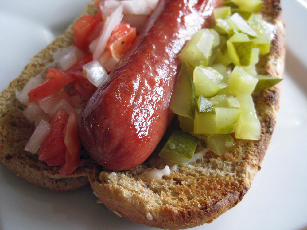 7.6-hotdog2 Published on July 7, 2010 at 1000 × 750 in Frankly Speaking! « Previous Chopped tomatoes, onions, and pickles on a dog.