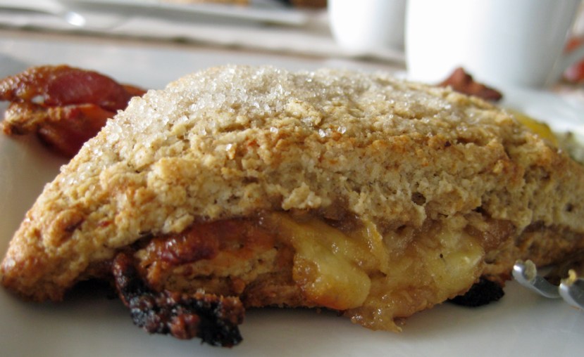 120510-apple-cheddar-scone-2 Published on December 5, 2010 at 1000 × 613 in Spicy apple pear butter « Previous Next » Yes, that’s bacon in the background. Hungry yet?