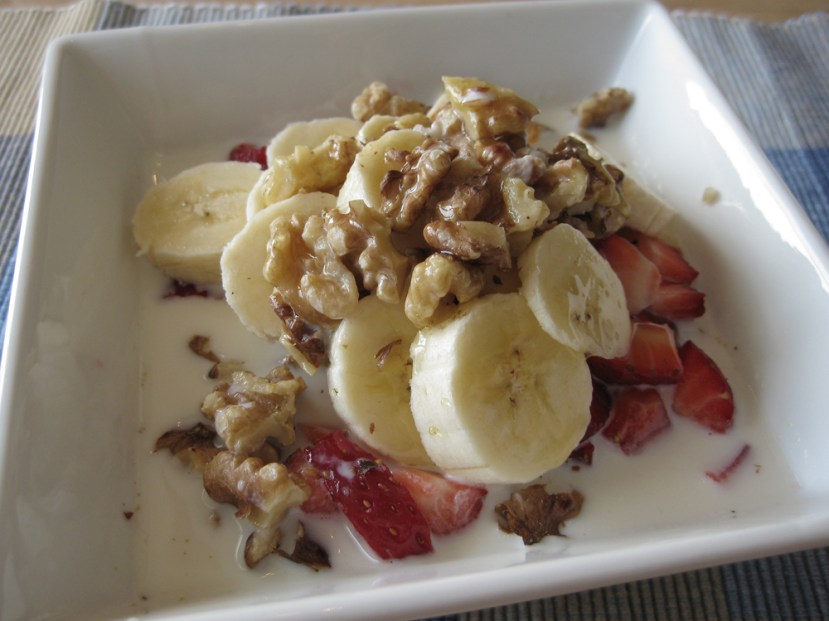 010511-oatmeal Published on January 5, 2011 at 1000 × 749 in Steel Cut Oatmeal – In a Flash Walnuts, bananas, strawberries, and milk cover the bowl of oatmeal.