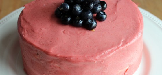 Blueberry Cake with Lemon Mousse and Strawberry Cream Cheese Frosting