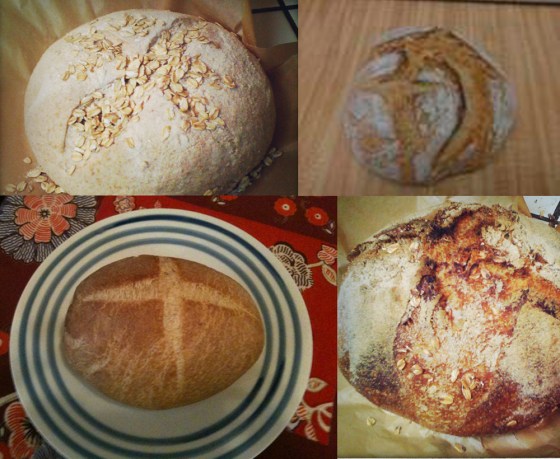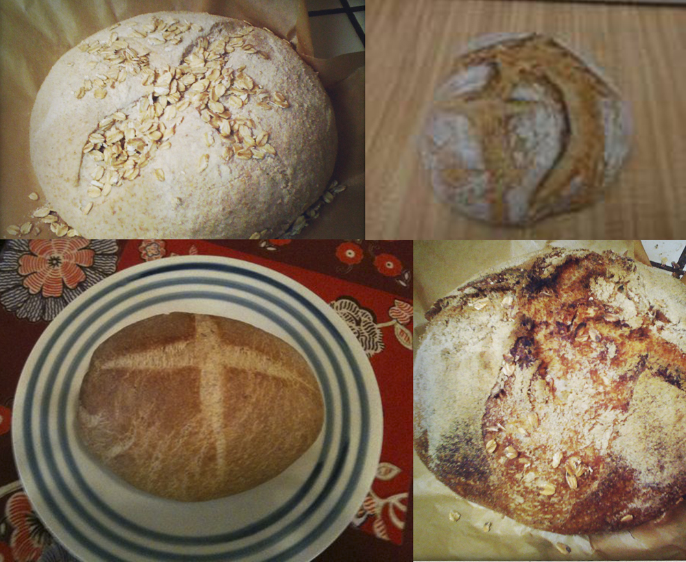 The bread created by members of our first class. Top – L to R: Kathleen (before), Joe. Bottom – L to R: Jess, Kathleen (after).