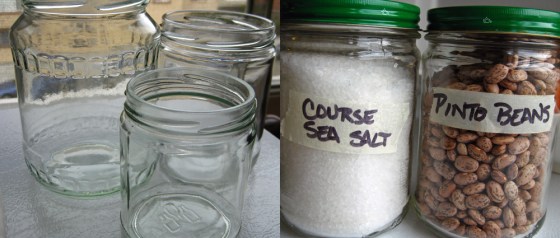 4. Reuse: Reuse glass containers instead of trashing them or sending them to the recycling bin. There are some great glass containers that are essentially free, with the cost of whatever food item you buy. We love peanut butter jars. These containers are perfect for food storage or for collecting items like coins, buttons, etc. Other good containers might include, jam and apple sauce jars – basically, you want to reuse jars that contained food items that aren’t vinegary or spicy. Avoid using salsa and pickle bottles since it’s difficult, if not impossible to get the smell out of the lids no matter how many times you wash them. Most glass jar labels come off with a little soaking. You can label and re-label as needed by using just a little masking tape and a marker.